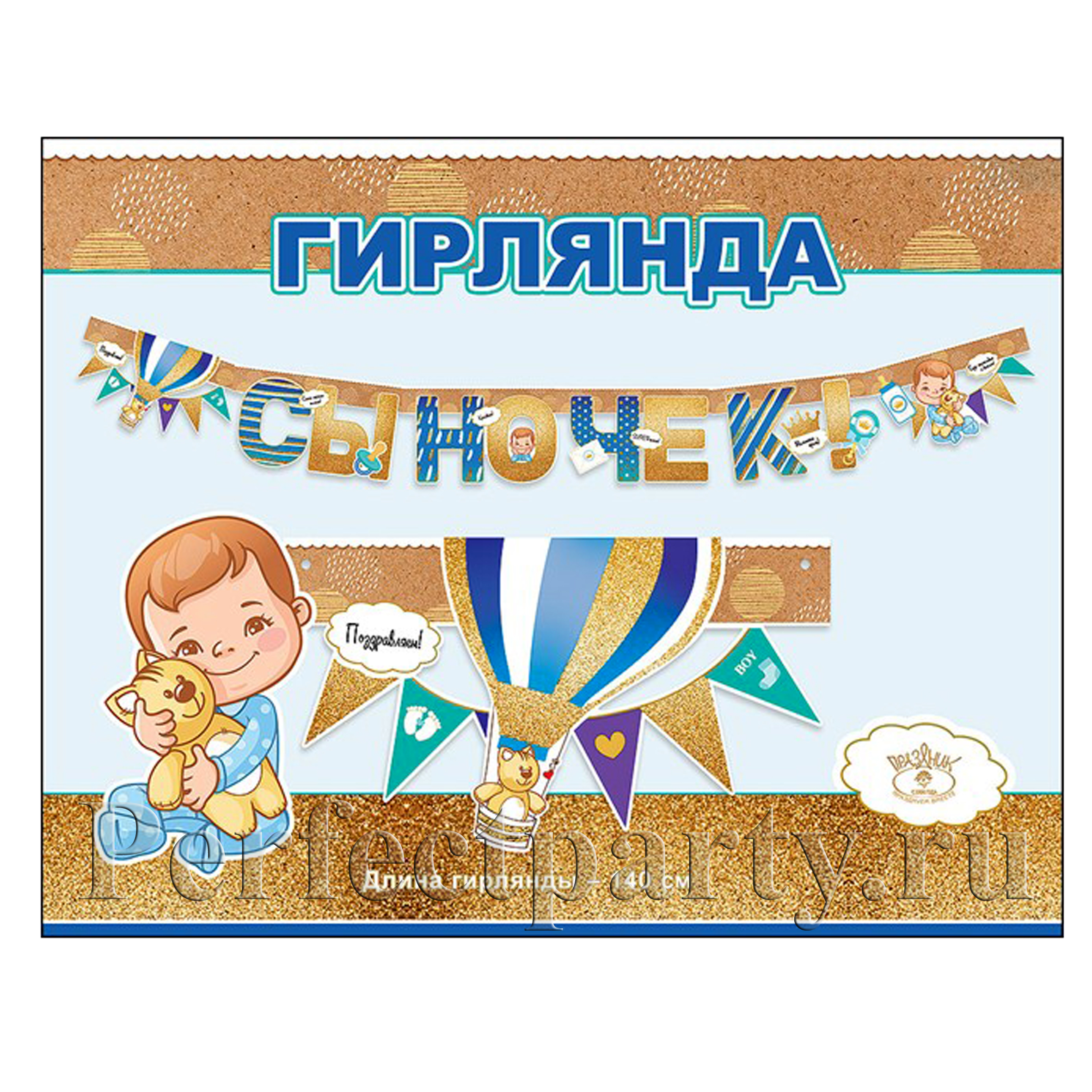 Гирлянда "Ура мальчик!" 3 м 12 деталей, на ленте