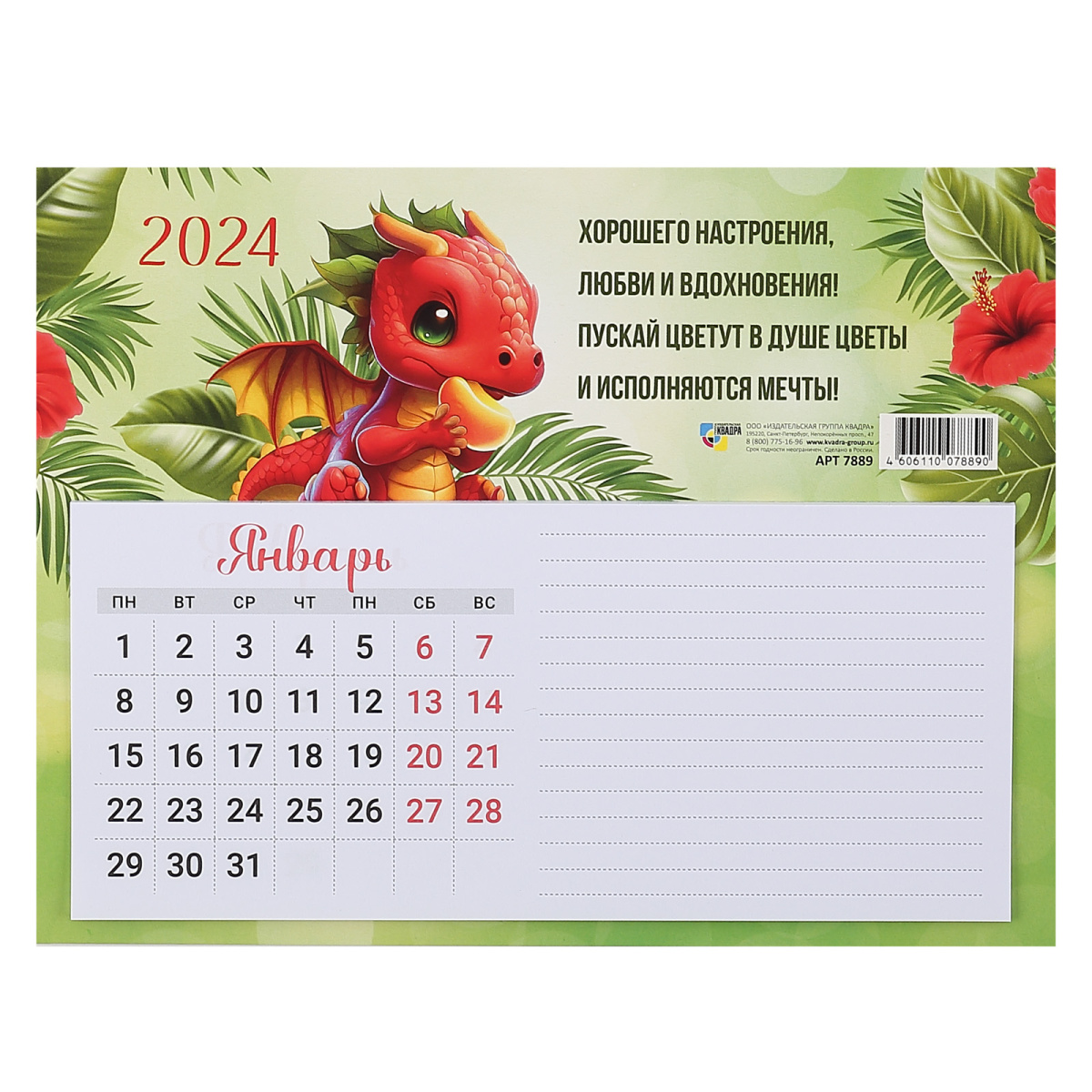 Календарь настенный 2026г, магнитный, отрывной, 108*245 мм, склейка, Мини-трио, Символ года, Квадра, 9371