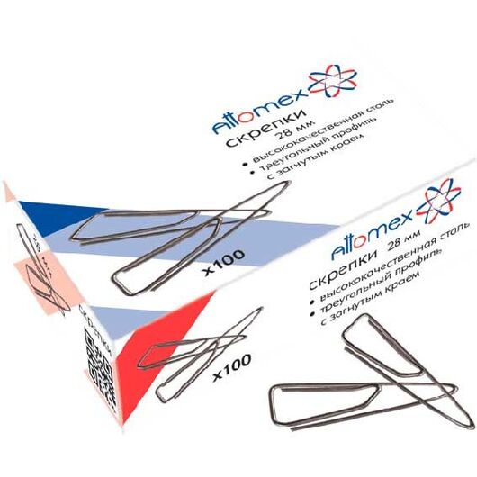 Скрепки, 28 мм, 100 шт, овальные, оцинкованные, цвет серебро, картонная коробка, Attomex, 4135601